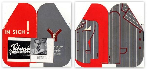 Depliant sagomato a forma di giacca di 4 facciate con all'interno un'altro piccolo depliant di 11 facciate; minimo strappetto al d. del sagomato; depliant pubblicitario molto bello e particolare; buon es.