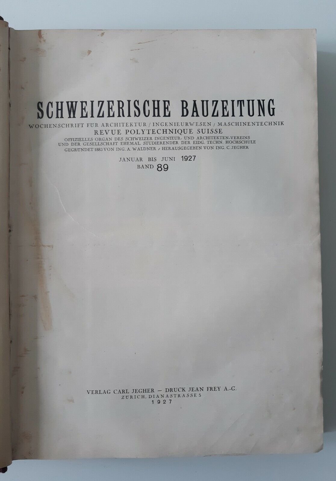 SCHWEIZERISCHE BAUZEITUNG REVUE POLYTECHNIQUE SUISSE ANNATA 1927