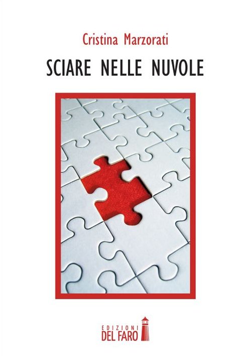 L'immagine di copertina è un puzzle perché la scrittura del libro è stata l'occasione per collocare al proprio posto fatti ed emozioni di vita, e per raggiungere, infine, la serenità, simbolicamente rappresentata da una sciata liberatoria (da qui il titolo "Sciare nelle nuvole"). Il tassello mancante è il fulcro del libro: la maternità. Il libro nasce dalle riflessioni di una donna a cui è negata la maternità. Fondamentale è stata la scoperta di una malattia che avrebbe potuto essere diagnosticata molto prima e, forse, in tempo utile per porvi rimedio. La trama si articola in una sequenza di brani in cui sono incastonati i concetti di "essere" e "apparire". Il corpo centrale del libro è un manoscritto dal titolo "Sciare nelle nuvole", trovato per caso in un mercatino. "Il quaderno è molto semplice, pare piuttosto il primo oggetto trovato su cui poter esprimere qualcosa che vuole manifestarsi con forza e senza indugio". I racconti tratteggiano la figura della donna nella società, il suo ruolo, le sue contraddizioni. Il percorso interiore allontana lentamente la rabbia e il dolore ed, infine, apre alla serenità degli affetti.