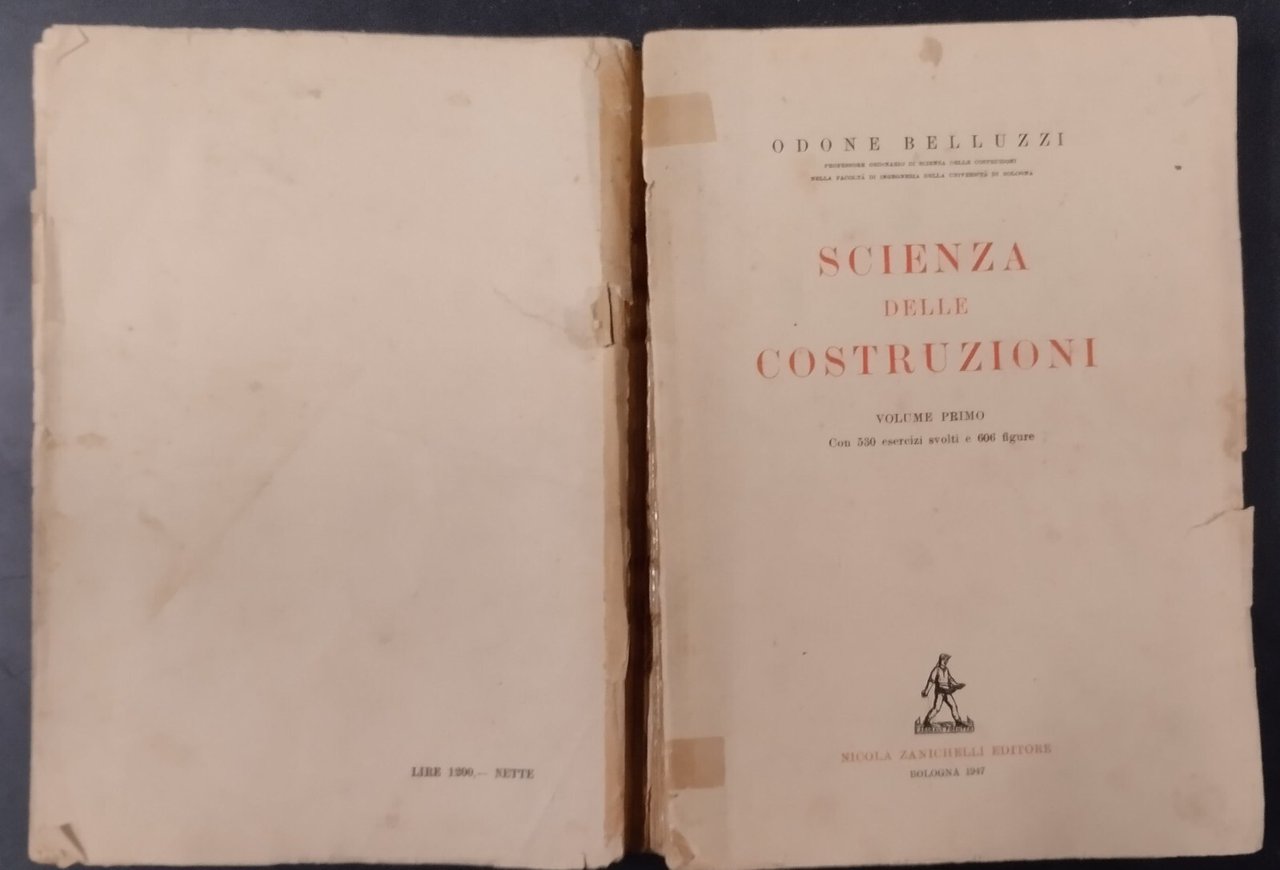 SCIENZA DELLE COSTRUZIONI di Odone Belluzzi Solo il Volume 1 Zanichelli Editore, 1947. 679 pagine, 530 esercizi svolti e 606 figure in bianco e nero nel testo. Copertina editoriale in brossura. Stato di conservazione: buono (pagine ingiallite, sottolineature a matita rosso blu, manca il dorso, piatti sciupati con residui di nastro adesivo e strappetti) Libro usato saggistica ingegneria
