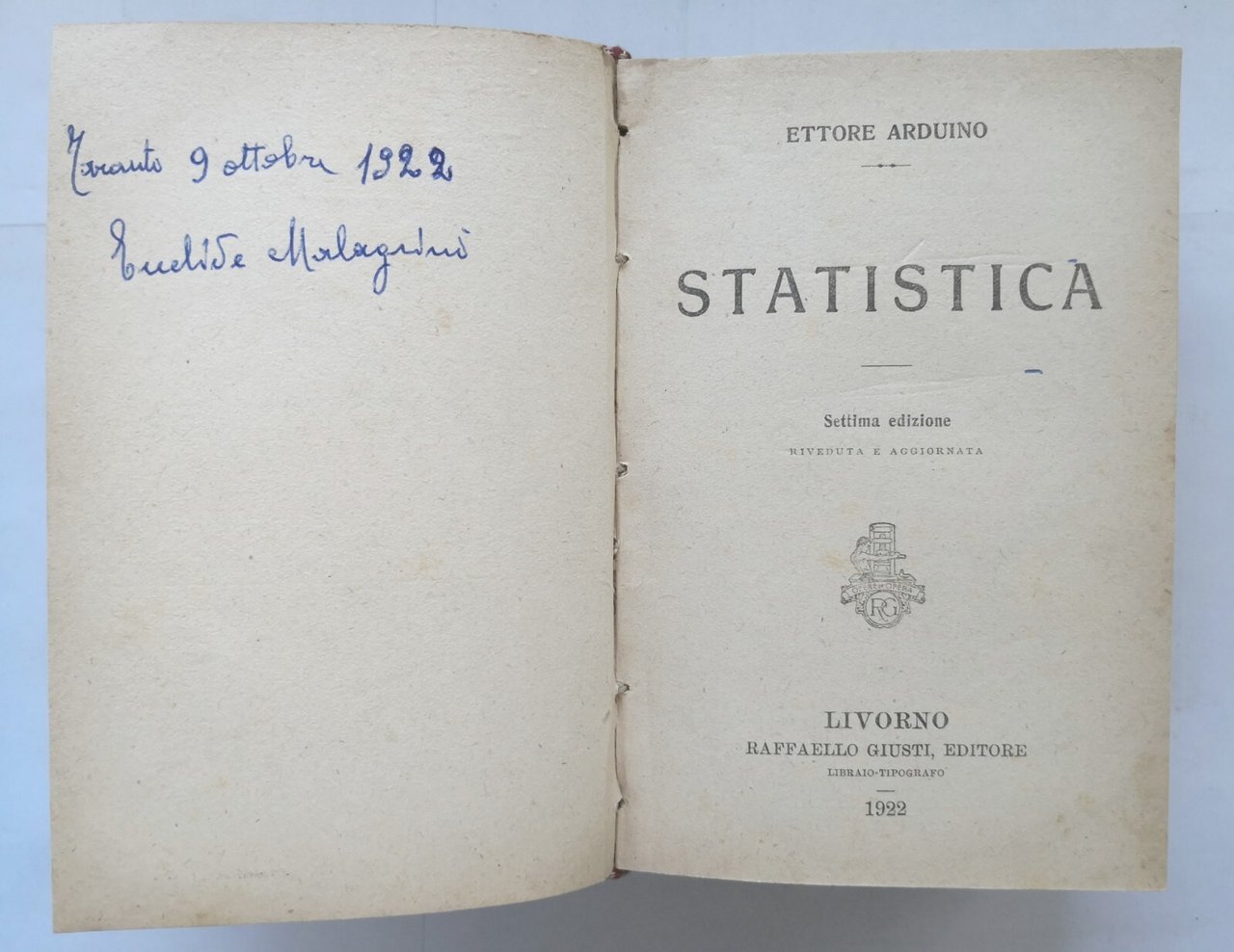 SCIENZE VARIE 7 volumi insieme. 1 - Scienza delle Finanze di Vito Cunsolo. 2 - Statistica di Ettore Arduino (1922). 3 - Economia Politica di Niccolò Pinsero. 4 - Diritto Amministrativo di Giuseppe Vaccaro Russo. 5 - Diritto Commerciale di Giuseppe Vaccaro Russo. 6 - Algebra di Pietro Visalli (1918). 7 - Guida pratica per la risoluzione delle Equazioni di 1° e 2° grado di A. Martini Zuccagni (1919).