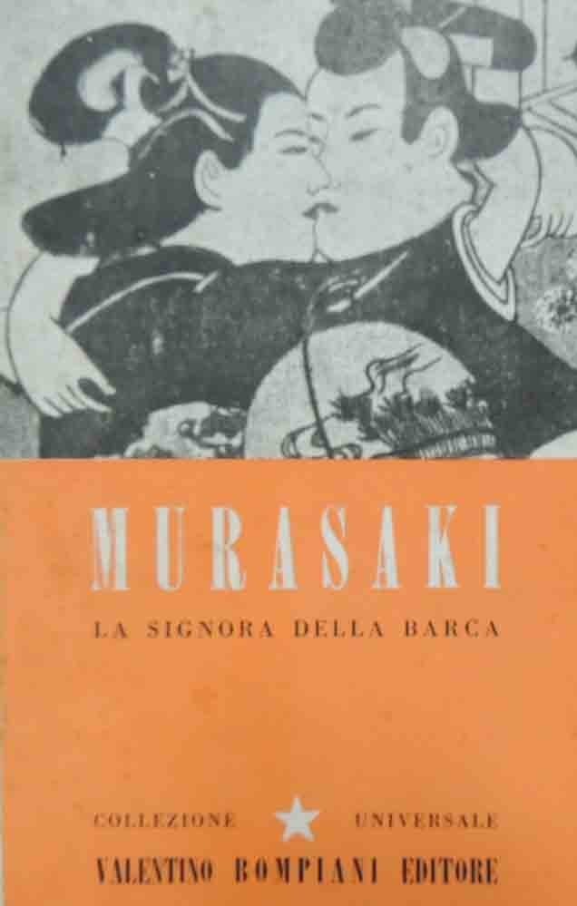 Murasaki Scikibu, La signora della barca, a cura di Pietro Jahier, Bompiani, Milano 1944, pp. 365, cm 18, br. ed. con sovraccoperta. Collana Corona. Collezione universale Bompiani, n. 45. Titolo originale: Ghengi Monogatari. Traduzione di Pietro Jahier. Leggere tracce d’uso a brossura e sovraccoperta, minime fioriture a esterni e prime e ultime carte, ma nel complesso volume ben conservato con interni freschi.