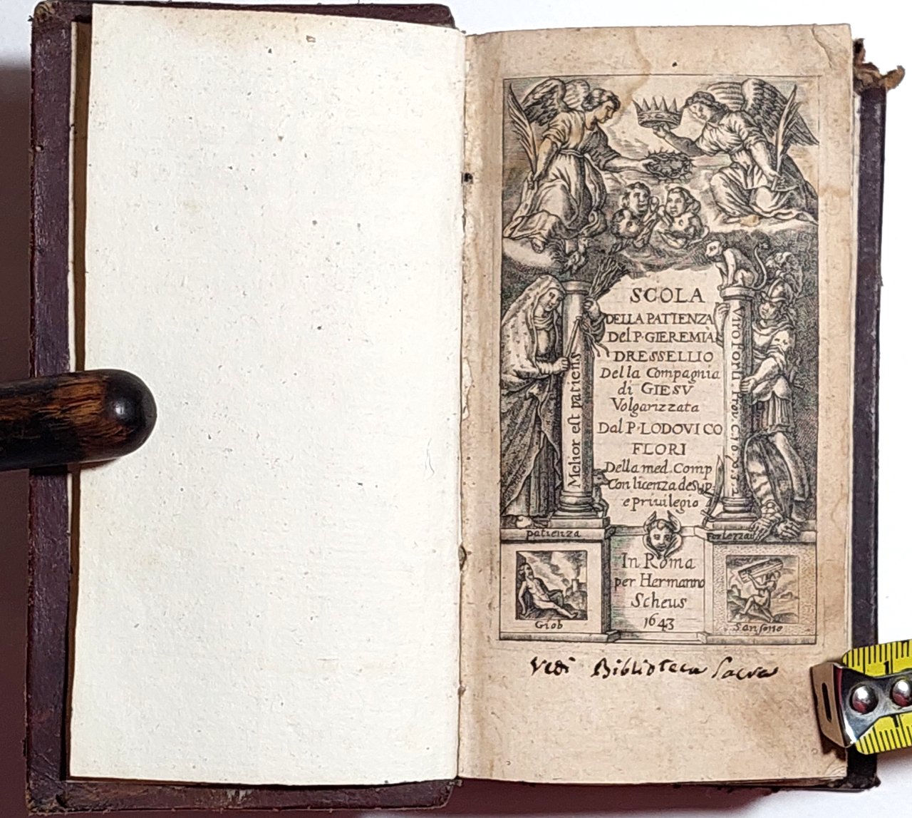 Scola della patienza del P. Geremia Dressellio della compagnia di Gesù volgarizzata dal P. Lodovico Flori della Med. Comp. con licenza dei superiori e privilegio in Roma per Hermanno Scheus 1643