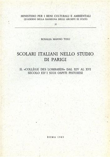 Scolari italiani nello Studio di Parigi. Il "Collège des Lombards" dal XIV al XVI secolo ed i suoi ospiti pistoiesi.