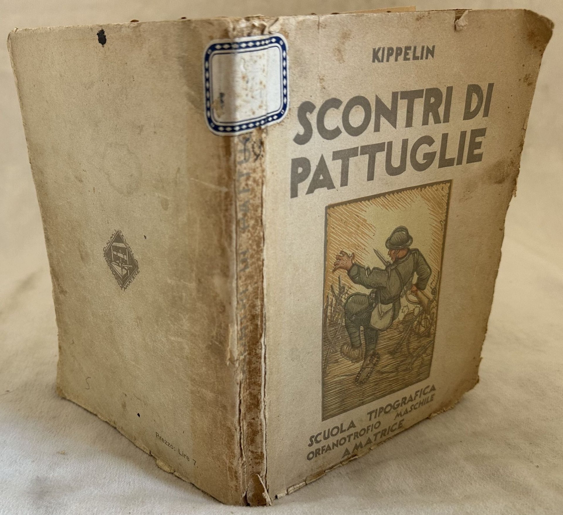 Edizione del 1933 di questo volume sulla prima guerra mondiale scritto da Kippelin. Dedica datata 1933 alla prima carta bianca. In discrete condizioni. Copertina editoriale in discrete condizioni con usure ai margini e dorso. Piatto anteriore in parte staccato. Etichetta al dorso. Legatura in discrete condizioni con lieve rotture. Pagine in buone condizioni con fioriture. In 16. cm 22,5x15 cm. Pp. 255.