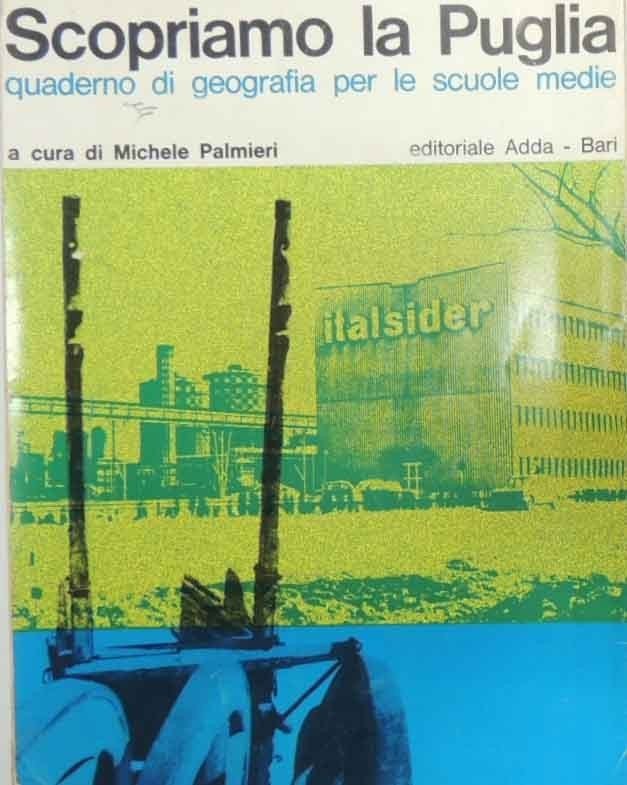 Scopriamo la Puglia. Quaderno di geografia per le scuole medie, a cura di Michele Palmieri, Editoriale Adda, Bari 1969, pp. 159, ill. b. n., cm 28, br. ed. Lievi tracce d'uso alla brossura, per il resto buona copia.
