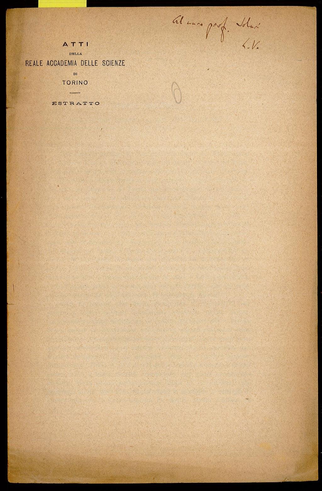 Opuscolo Vintage. Estratto dagli atti della reale accademia delle Scienze di Torino vol LIV. Adunanza del 22 giugno 1919. Note a matita in copertina e a penna stilografica in copertina. Note a penna stilografica in quarta, timbri e francobollo. Ordinario segno del tempo.