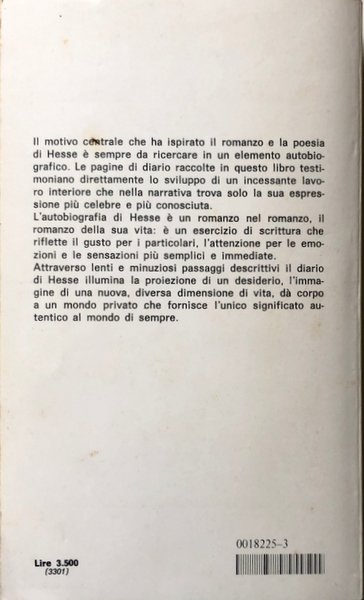 Soggetti: Biografie, Memorie, Diario, Classici contemporanei stranieri, Libri vintage, Fuori catalogo, Bibliografia, Romanzi, Scritti, Crisi, Guerra, Storia mondiale, Saggi, Briefe, Lavinia Mazzucchetti, Romanzo della mia vita, Gesammelte Werke, Raccolte letterarie, Spiritualità, Religione, Buddismo, Psicanalisi, Antologie, Max Brod, Dostoevskij, Intellettuali, Stendhal, Thomas Mann, Tolstoj, Influenze letterarie, Freud, Julien Green, Wilhelm Meister, Novalis, Goethe, Hugo Ball, Geist, Deutschland, Dichter Dichtung, Gottfried Keller, Mitteleuropa, Cultura europea, Romanticismo, Novecento, Freunde, Amicizia, Martin Buber, Psychoanalyse, Zarathustra, Buddha, Demian, Welt, Selma Lagerlof, Siebenkäs, Infanzia dell'incantatore, Viaggio, Guerra e pace, Germania, Norimberga, Lettere, Corrispondenza, Premio Nobel, Lupo della steppa, Siddhartha, Eine indische Dichtung, Poema indiano, Gertrud, Filosofia orientale, Induismo, Schopenhauer, Nietzsche, Heidegger, Esistenzialismo, Misticismo, Narciso e Boccadoro, Narziß und Goldmund, Il giuoco delle perle di vetro, Lebensreform, Carl Gustav Jung, Das Glasperlenspiel, Die Morgenlandfahrt, Il pellegrinaggio in Oriente, Biographies, Memoirs, Diary, Foreign contemporary classics, Books out of print, Bibliographies, Novels, Writings, Crisis, War, World history, Essays, Novel of my life, Literary collections, Spirituality, Religion, Buddhism, Psychoanalysis, Anthologies, Literary influences, Mitteleuropa, European culture, Romanticism, Twentieth century, Friendship, Buddhism, Childhood of the caster, Travel, War and Peace, Germany, Nuremberg, Letters, Correspondence, Steppe Wolf, Indian poem, Eastern philosophy, Hinduism, Existentialism, Mysticism, Narcissus and Boccadoro, The game of glass beads, The pilgrimage in the East, Autobiographical Writings