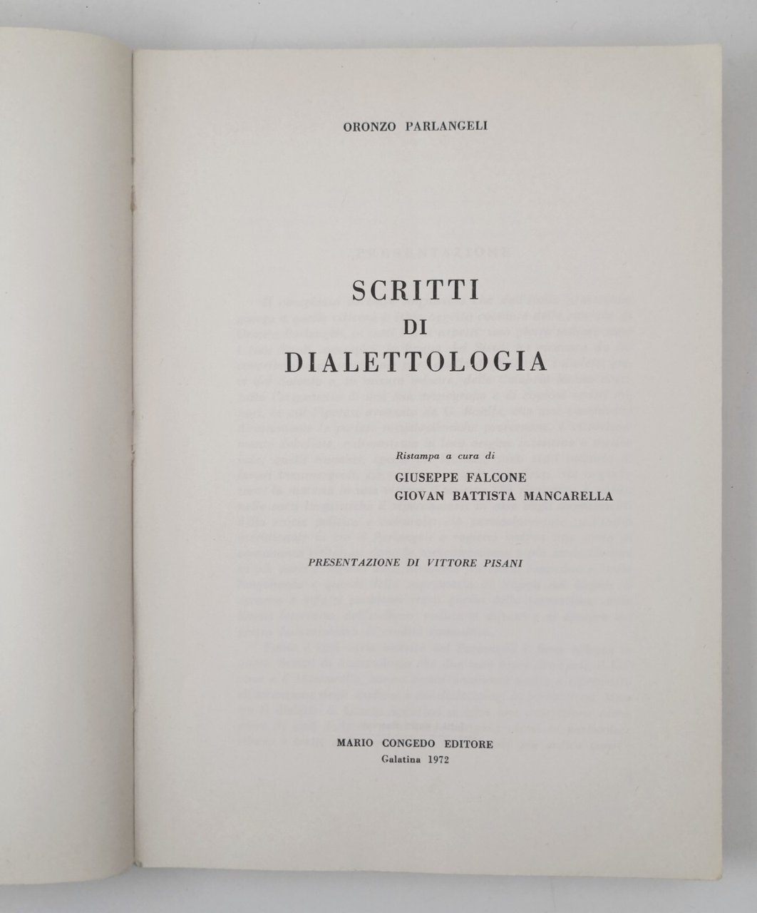 SCRITTI DI DIALETTOLOGIA di Oronzo Parlangeli 1972 Congedo ristampa Libro dialet