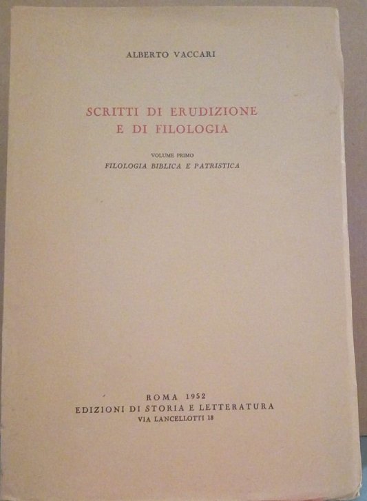 SCRITTI DI ERUDIZIONE E DI FILOLOGIA - VOLUME 1