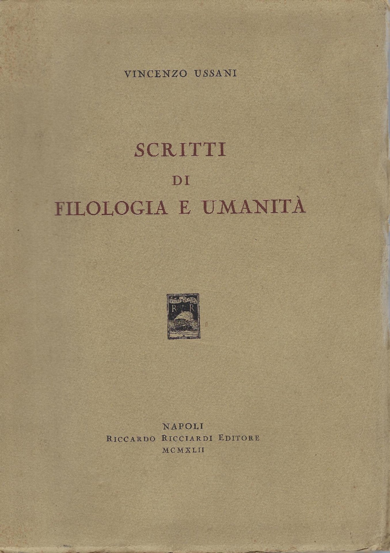 XXVII, 378 p., 25 cm. ritratto di Ussani all' antiporta Buono (Good) copertina con segni del tempo, fioriture sparse sui tagli e sulle pagine, pazialmente intonso.