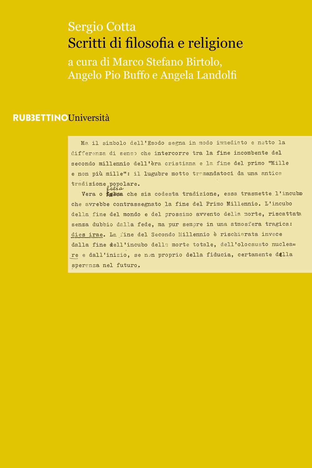 Prefazione di Lorenzo Scillitani Sergio Cotta (1920-2007) è ampiamente noto, in sede nazionale e internazionale, per essere stato un'autorità nel campo della filosofia del diritto e della politica. Il costante richiamo a opere come Il diritto nell'esistenza e I limiti della politica ne attestano la significativa, persistente influenza sul dibattito scientifico-culturale. Tuttavia, gli aspetti più direttamente legati alla dimensione specificamente religiosa della vita e della produzione intellettuale di uno degli ultimi Maestri del Novecento rischiano di restare in ombra. La raccolta dei 22 scritti che qui vengono riproposti, elaborati con una grande chiarezza espositiva e un rigore argomentativo che li rendono accessibili anche a lettori non specialisti, intende pertanto contribuire a colmare una lacuna di ordine ermeneutico, suscettibile di pesare sul senso di una rivisitazione complessiva del percorso di ricerca cottiano, impegnato con le dimensioni giuridiche e politiche dell'esistenza non meno che, su di un piano altrettanto filosofico, con l'elemento religioso.