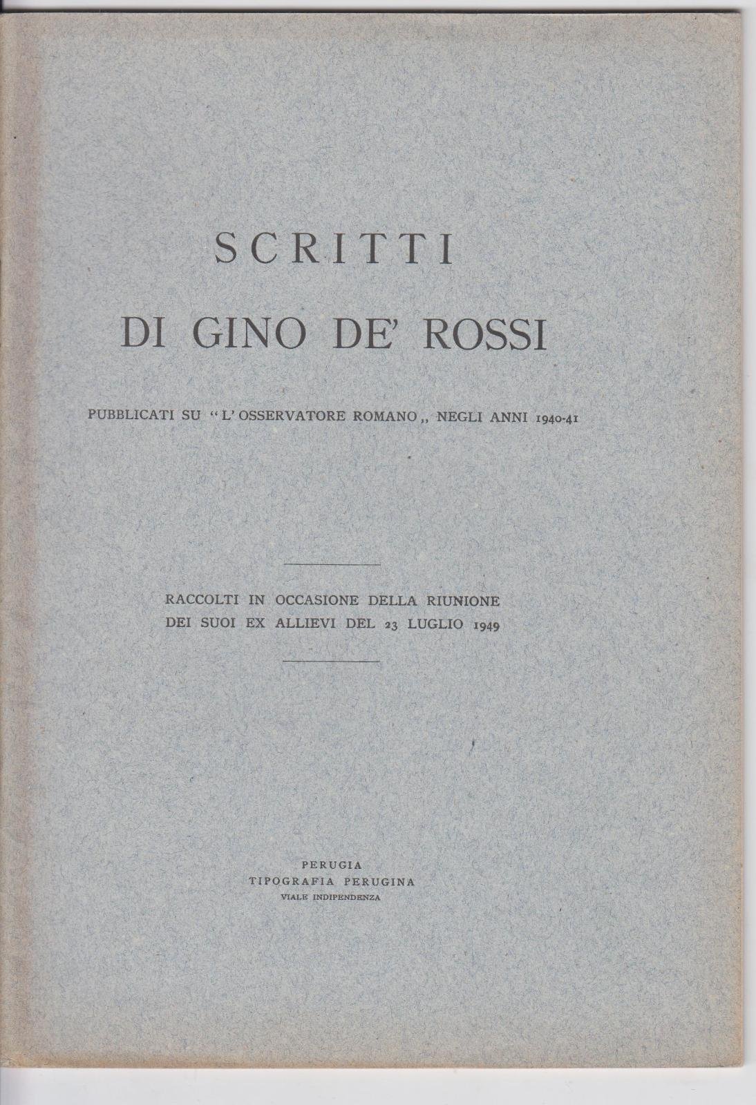 Scritti di Gino De Rossi pubblicati su l'osservatorio Romano negli anni 1940-41