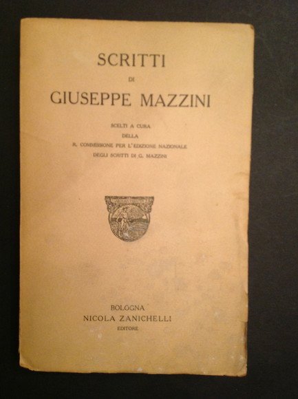 Scelti a cura della R. Commissione per l'edizione nazionale degli scritti di G. Mazzini. Scritta a penna al frontespizio<br/>Legatura brossura<br/>Formato Ottavo<br/>Num Pagine 319
