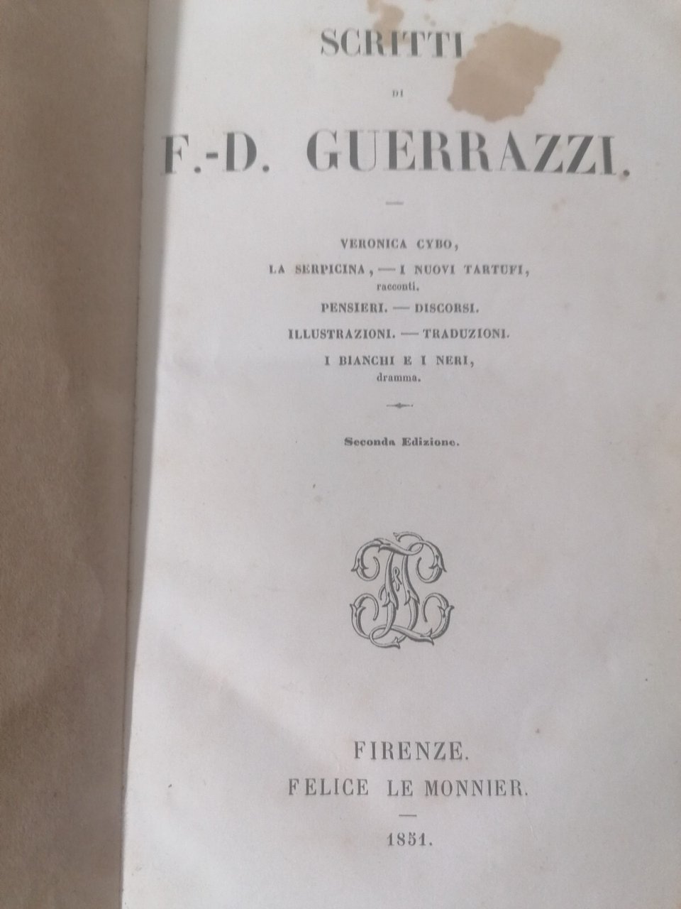 Scritti Di Guerrazzi . Veronica Cybo, La serpicina, I nuovi tartufi, Pensieri, Discorsi, Illustrazioni, Traduzioni, I bianchi e i neri