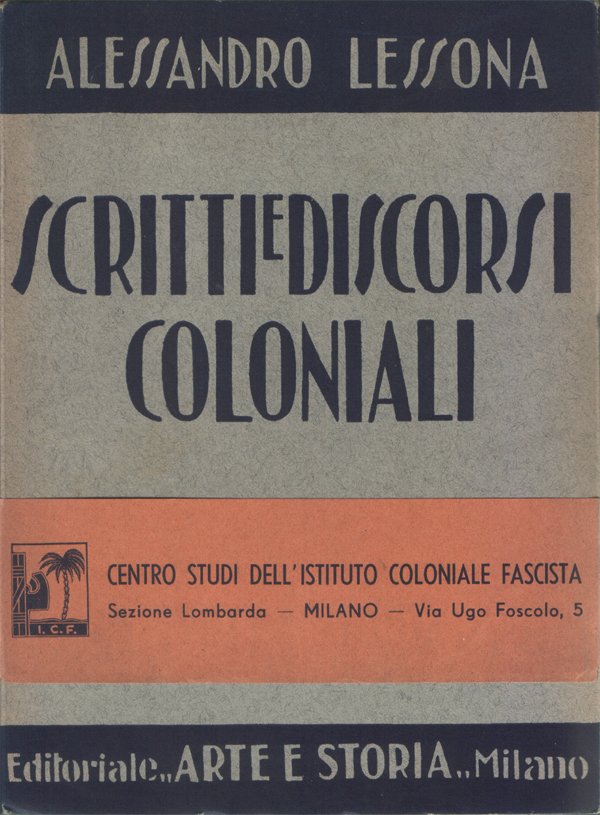 In-8°, pp. XVI, 293, (3), copertina editoriale. Conservata la fascetta editoriale del "Centro studi dell'Istituto Coloniale Fascista sezione Lombarda - Milano" (vedi foto). Pagine con normale, leggera patina del tempo, per il resto ottimo esemplare, intonso. Indice: Lettera all'Editore; Parole ai giovani; La conquista del Fezzan; La produzione del sale nelle Colonie Italiane; Commemorazione di Giovanni Miani; Le ferrovie dell'Eritrea; Lo stato fascista e l'economia coloniale; Azione italiana in Africa; L'Africa elemento di pacifica collaborazione fra i popoli; La colonizzazione demografica in Libia; Il popolamento della Libia; La Cirenaica ad un anno dalla occupazione di Cufra; Le possibilità, i problemi e gli sviluppi avvenire della Somalia; Le colonie italiane nel quadro europeo; Agricoltura tripolitana; La missione dell'Italia nell'Africa d'oggi; Discorso pronunciato al Teatro Lirico di Milano; Eritrea e Somalia ai fini dell'espansione italiana; L'Africa nella politica europea; Realizzazioni e propositi del colonialismo italiano; La Cirenaica ci può dare la lana; Discorso pronunciato alla camera dei Deputati sul Bilancio delle Colonie; Discorso pronunciato al Senato sul Bilancio delle Colonie; Politica indigena ed economia in Somalia; Giovanni Chiarini; Colonizzazione di popolamento in Libia ed azione di governo; Italia e Africa; Parole agli americani; Italia, Abissinia ed altri.