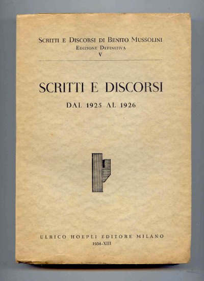 In 8vo (cm 22x15,5). Brossura originale, Pag. 487 con una fotografia di Mussolini a piena pagina. Carta filigranata, ottimo stato.