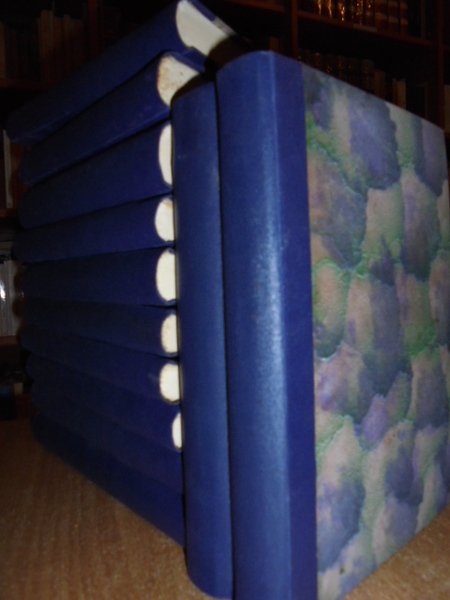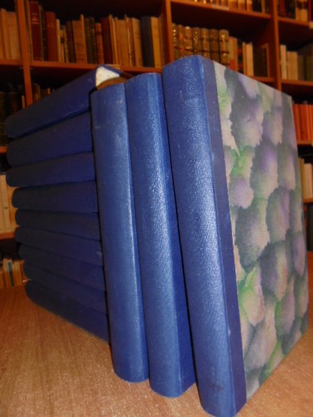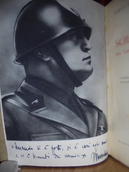 Mussolini, Benito. Milano, Ulrico Hoepli, 1934 - 1939. Scritti e Discorsi di Benito Mussolini edizione definitiva. 12 volumi in - 8°, m. tela, copertine originali conservate. Complessive 3834 con 11 ritratti coperti dalle veline e numerosi facsimili di autografi n.t e f.t. I titoli sono i seguenti: Dall' intervento al fascismo. La rivoluzione fascista. L' inizio della nuova politica. Il 1924. Scritti e discorsi dal 1925 - III al 1926 - IV E.F. Scritti e discorsi dal 1927 - V al 1928 - VI - VII E.F. Scritti e discorsi dal 1929 - VII al 1931 - IX - X E.F. Scitti e discorsi dal 1932 - X - XI al 1933 - XI - XII E.F. Scritti e discorsi dal Gennaio 1934 al 4 Novembre 1935 (XII - XIV E.F.). Scritti e discorsi dell' Impero (Novembre 1935 - XIV - 4 Novembre 1936 - XV E.F.). Scritti e discorsi dal Novembre 1936 al Maggio 1938 (XV - XVI E.F.). Scritti e discorsi dal Giugno 1938 al 18 Novembre 1939 (XVI - XVIII E.F.). Appendice contenente alcuni scritti del 1928 e 1937 - 38 non pubblicati nella presente " Edizione definitiva". Finito di stampare il 7 Dicembre 1939 - XVIII nella Tip. Industrie Grafiche Italiane Stucchi, Milano, su carta << Sparta >> delle Cartiere Burgo filigranata col Fascio Littorio e con la firma del Capo del Governo. Opera completa ben conservata. Neg. magaz.