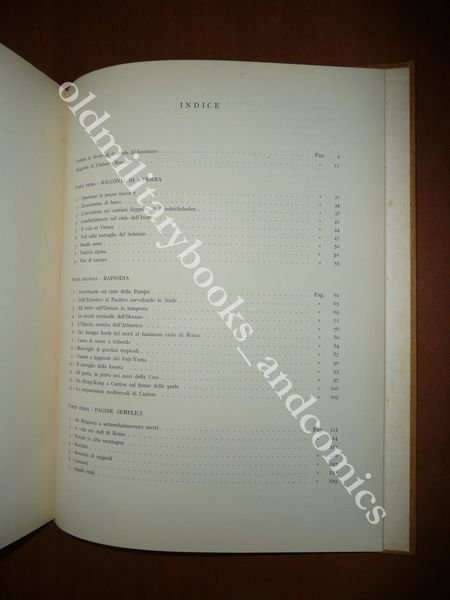DESCRIZIONE: Ed. Istituto Italiano Arti Grafiche, Bergamo, 1956. In 4°, leg. tela ocra con tit. oro al piatto e al dorso, pp. 131 con 15 ill. a col. f.t. Raccolta dell'opera artistica dell'aviatore Antonio Locatelli, insignito per tre volte della medaglia d'oro e tre volte della medaglia d'argento. Il volume contiene anche la riproduzione della lettera di Gabriele D'Annunzio, scritta per la morte di Locatelli. Indice completo in foto. CONDIZIONI: Buone. Un'ammaccatura al dorso, alcune macchie in copertina. Perfetto all'interno. PESO / WEIGHT: 990 gr. without package