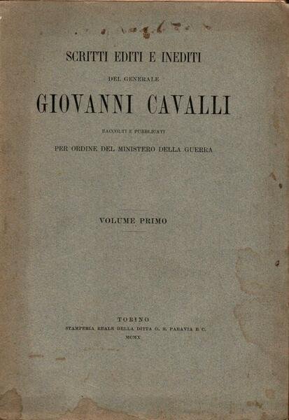 "Scritti editi e inediti del generale Giovanni Cavalli. Vol. I, II, III e IV", edizione 1910 e 1911, formato 19,5 x 28.