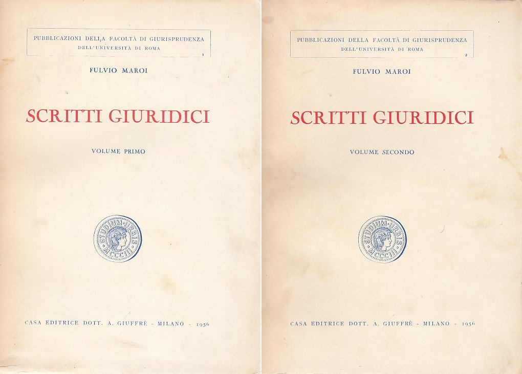 2 Voll. In-8 (Cm 25,5 x 18), pp. 734 - 843 , brossura editoriale. Pubblicazione della facoltà di Giurisprudenza di Roma. Esemplare a fogli chiusi. Pieghette verticali ai dorsi, pagine tipicamente brunite. Segni del tempo. Leggermente lenti nella pagine centrali. BUONO