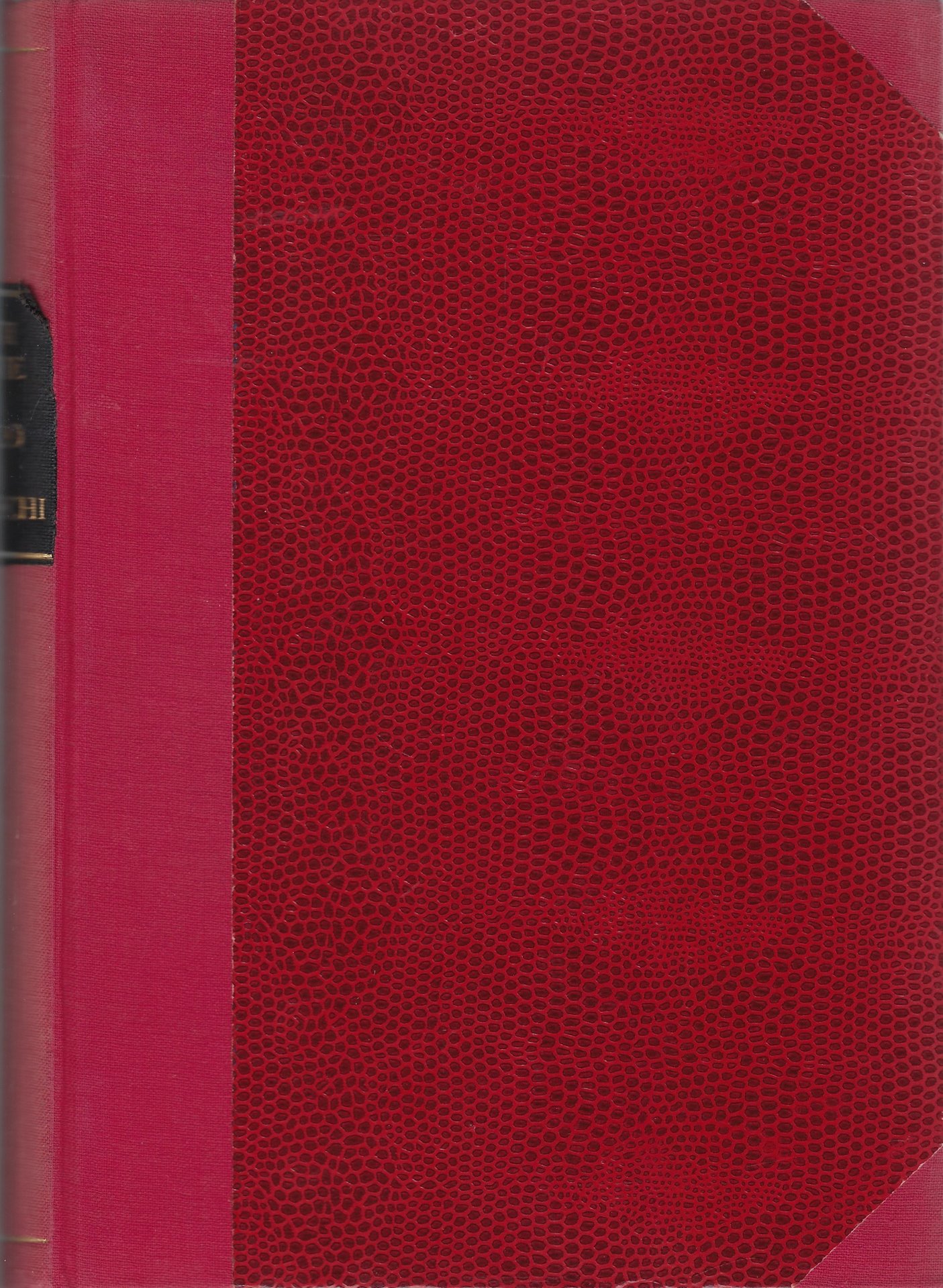 Rilegatura d'amatore in mezza tela rossa con angoli, piatti rivestiti in similpelle. Presenta lievi segni d'uso.
