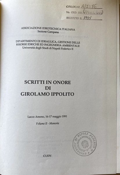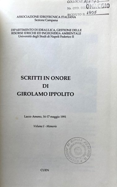 Curatore: Dipartimento di Idraulica, Gestione delle risorse idriche ed Ingegneria Ambientale dell'Università degli Studi di Napoli Federico II; Associazione Idrotecnica italiana, Sezione Campania