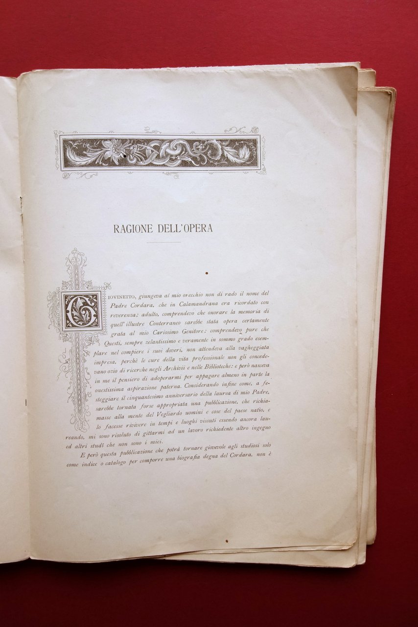 Giuseppe Albertotti, Scritti inediti di Giulio Cesare Cordara e documenti relativi pubblicati per il cinquantesimo anniversario di laurea dottorale in medicina e chirurgia del Dott. Cav. Giovanni Albertotti Coi Tipi della Soc. Tipografica, Modena 1899; cm 32x22,5; pp. 92 con qualche tavv. in b/n; mancanza della brossura post. e del dorso, peraltro testo completo. Condizioni di conservazione Esemplare in modeste condizioni, mancante della brossura post. e del dorso, parzialmente sciolto; tracce di nastro adesivo per precedente artigianale restauro (vedi foto); margine inferiore con leggera ombra di gora di vecchia umidità che non compromette il testo; brossura ant. con leggere tracce di sporco e qualche minima marginale mancanza. Minime bruniture. Qualche pagina ancora intonsa. Per maggiori dettagli vedi foto. In condizioni come da foto e descrizione. Mancante del dorso e della brossura posteriore, peraltro testo completo. SETT64BIS.L22425 N
