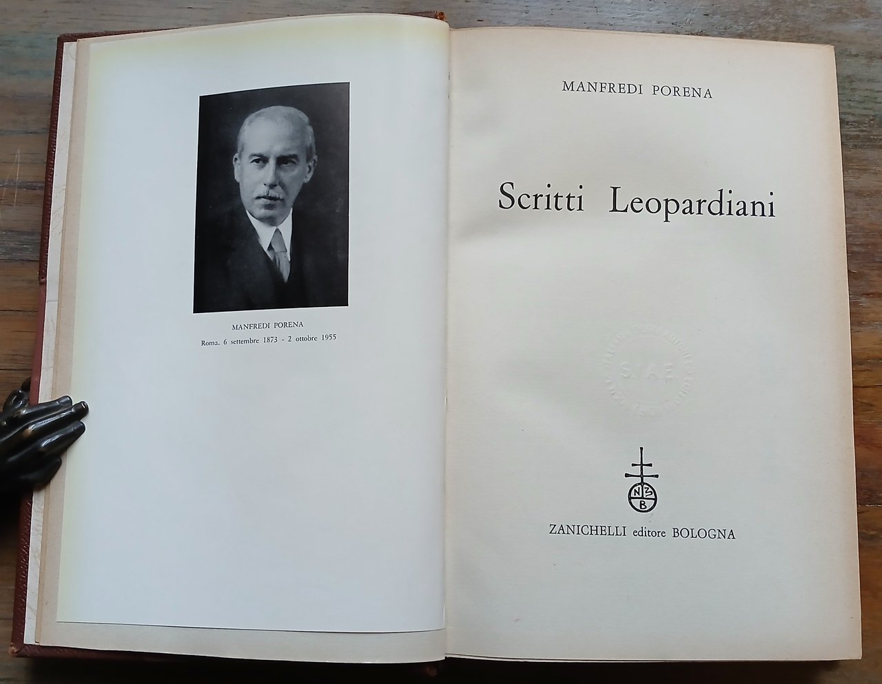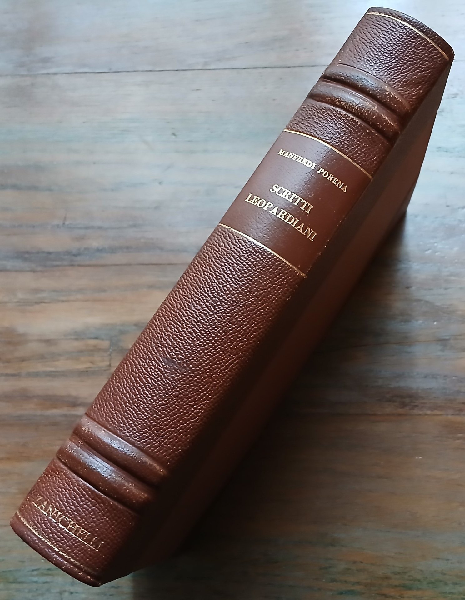 In 8°, legatura coeva in mezza pelle con punte, dorso a due nervi con titoli e filetti impressi in oro, taglio di testa dorato, pp. (8),487,(1), con ritratto fotografico dell'autore in antiporta. Ottimo stato di conservazione.