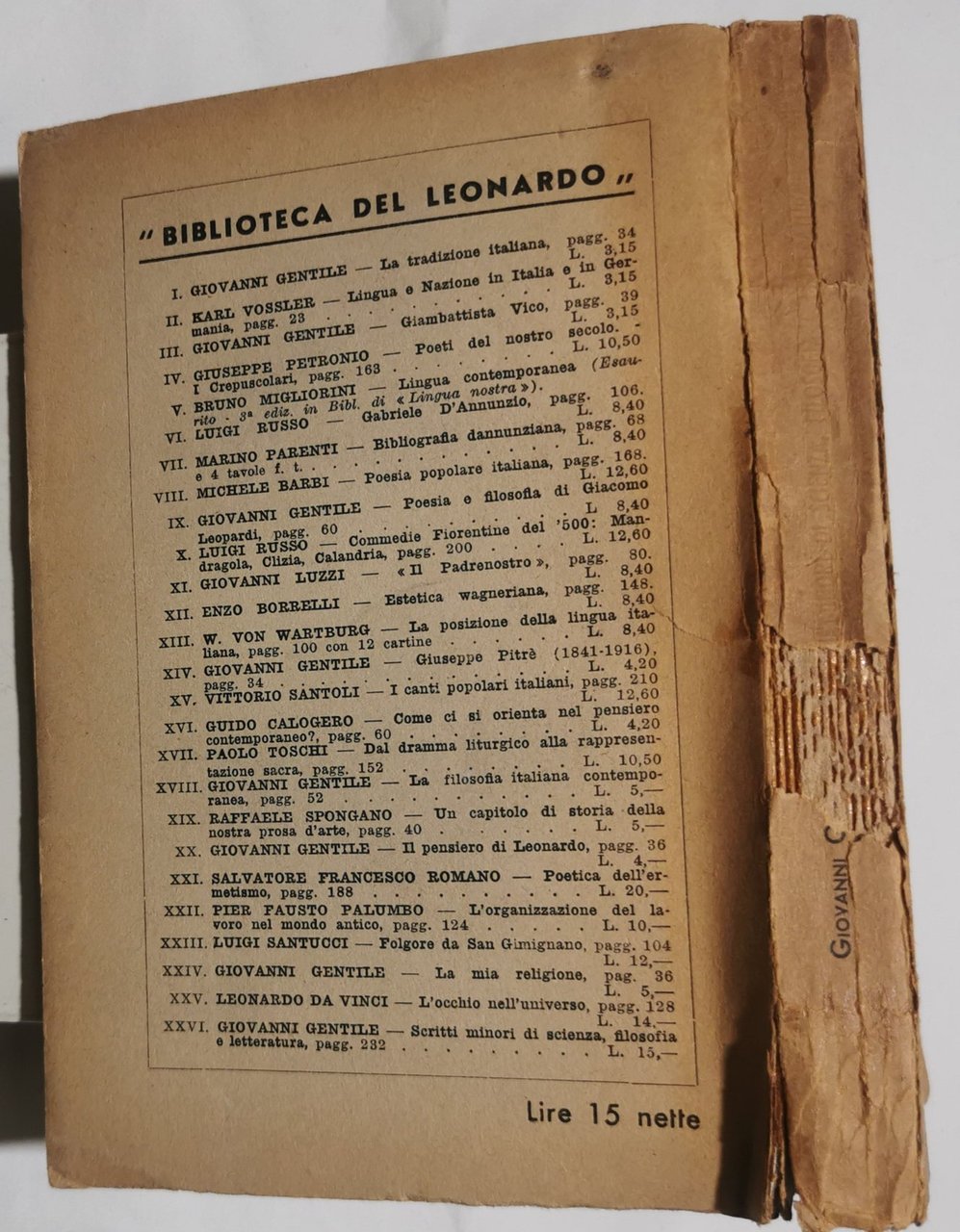 In 8', br. ed., pp. 230; mancanze al dorso, bruniture diffuse, interno buono. ***Due to bureaucratic reasons, books dated over 70 years old cannot be immediately exported, please contact us before placing the order.***