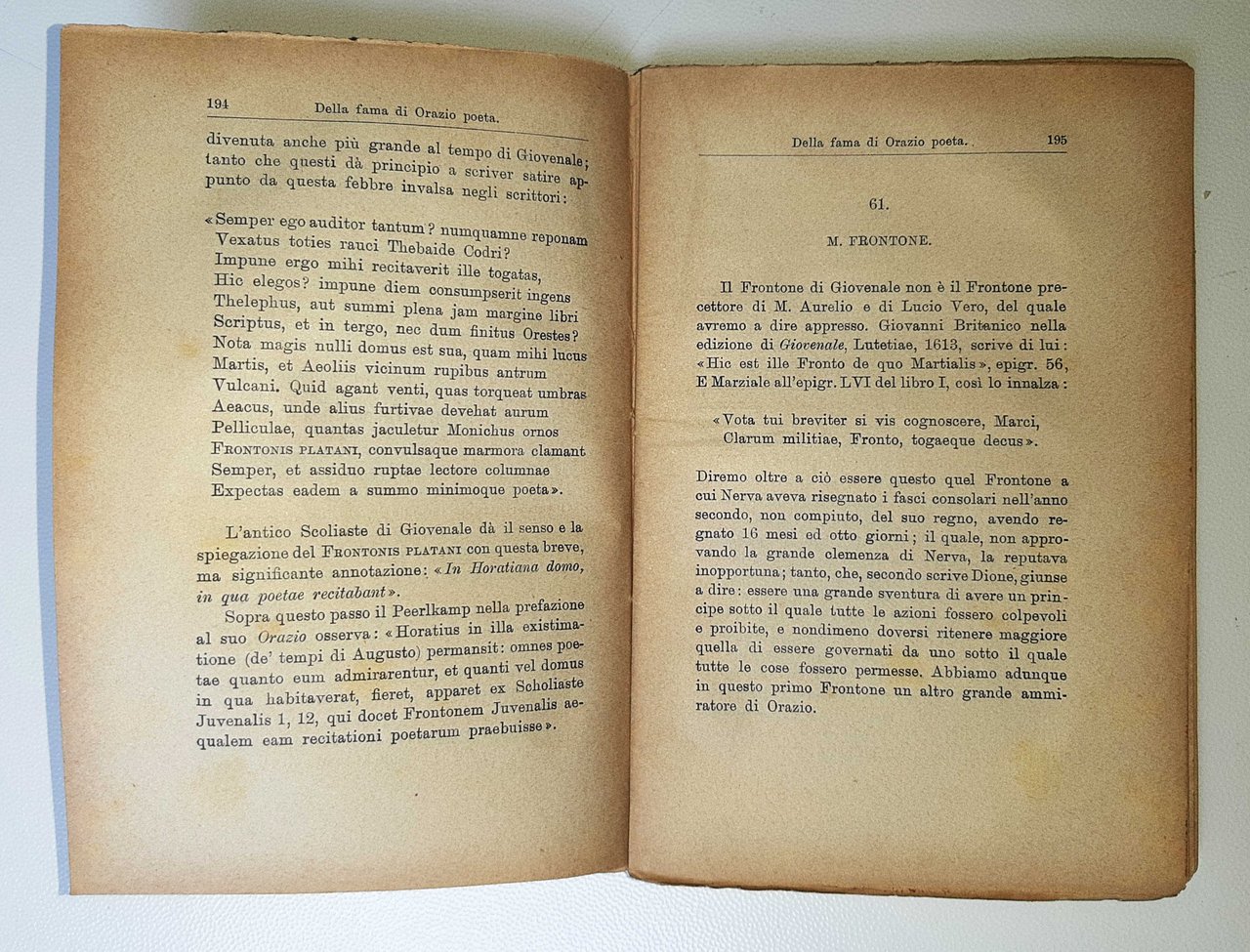 un volume; cm 19,5 x 13; pp. VII, (1 b.), 400, (1), (1 b.); testo scolastico; leg. in brossura editoriale in carta leggera colore avana con titolo a caratteri rossi e neri al piatto ant., titolo in nero al dorso; l'Autore dell'opera è Biagio Placido (n. 1814, avvocato, consigliere comunale, presidente della Lega Romana per l'istruzione del popolo, commissario del Museo artistico industriale di Roma, librettista, autore di operette e inni, latinista, traduttore di opere latine, nato a Scrofano (oggi Sacrofano, RM). Prov.: dedica autografa dell'A. alla pag. dell'occhietto. Rif.: IT\ICCU\RML\0081688. Cond.: presenza di alcune macchie e bruniture, leggere tracce d'uso alla leg., cerniera ant. riparata; opera in discrete condizioni generali.