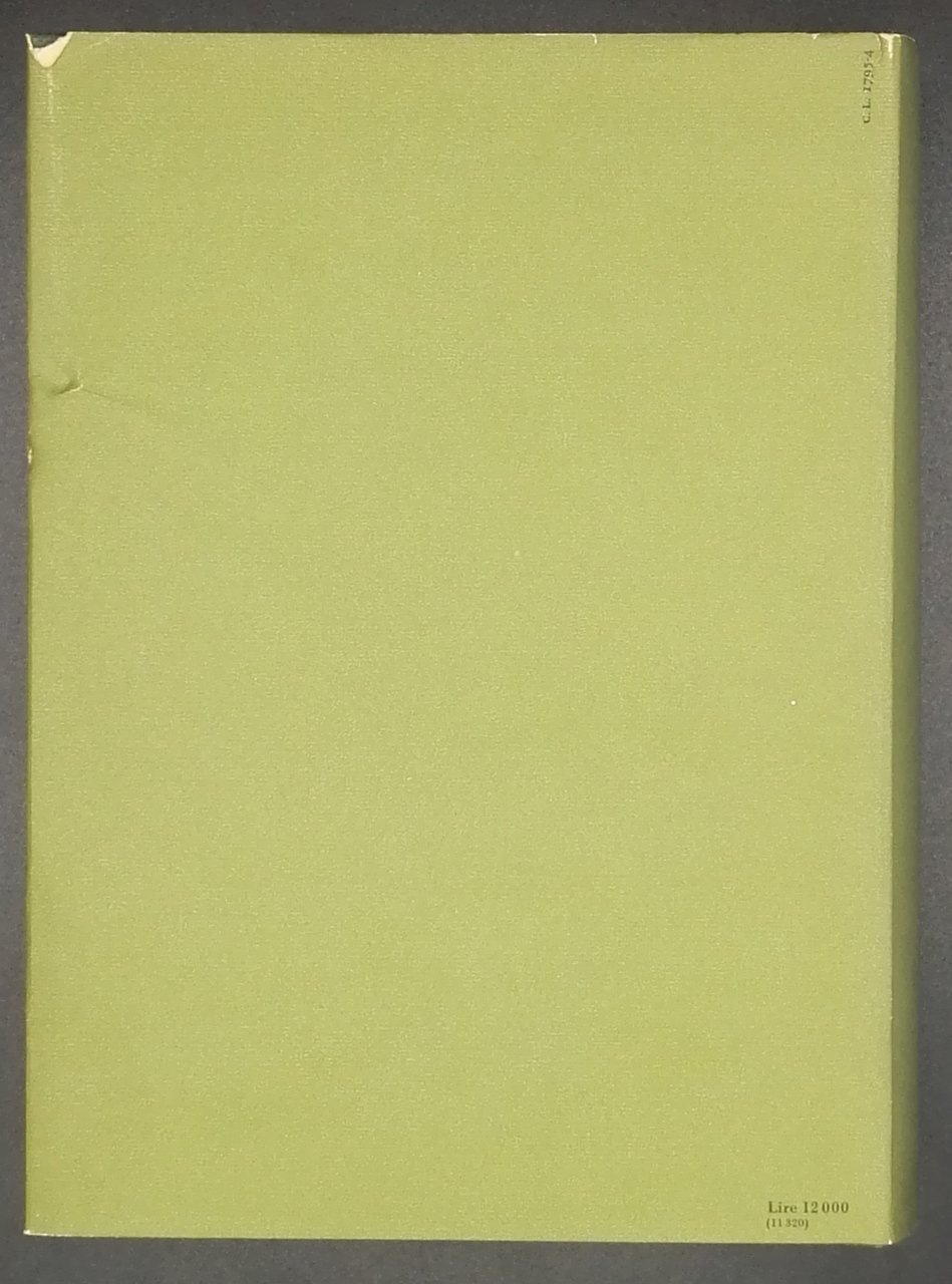 Seconda edizione. Sovracopertina rovinata sul bordo superiore frontale (pezzo mancante, vedi foto). Sul retro piccolo schiacciamento (vedi foto). Contiene scheda editoriale. Stato interno ottimo.