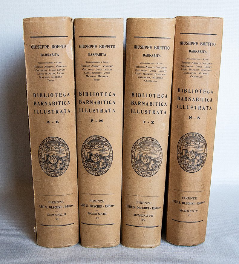 4 voll. Vol. I A-E XV, doppia tav., 680, (5) pp. con 117 facsimili. Vol. II F-M (8), 633, (2) pp. con 130 facsimili. Vol III N-S (8), 580, (3) pp. con 134 facsimili. Vol IV T-Z (8), 600, (4) pp. con decine di facsimili. Esemplare 143 di 240 copie. Ex-libris H.P. Kraus. La storia dell’ordine fondato a Milano da Antonio Maria Zaccaria nel 1530 raccontata attraverso un esame minuzioso di quanto i Barnabiti avessero case, collegi, chiese, ospedali, ecc. Molti barnabiti divennero grandi studiosi e scienziati e, dopo la soppressione della Compagnia di Gesù, subentrarono nella direzione di alcune delle loro opere.