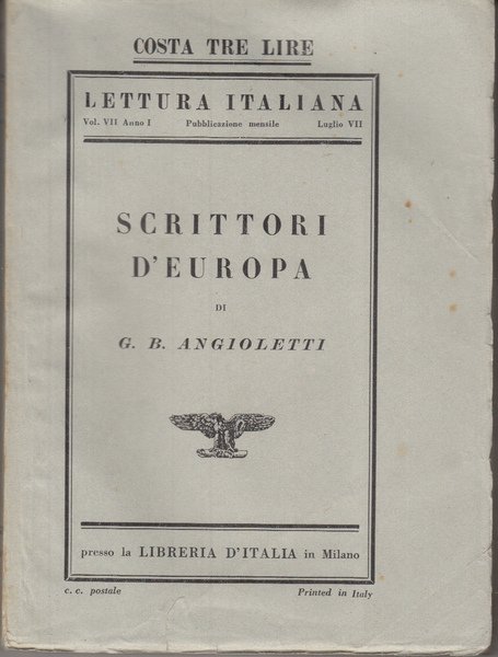 In-16 (Cm 19 x 14), pp. 185-XXVIII, collana Letteratura Italiana, vol. VII, anno I. Piccolo strappetto alla brossura ant. INTONSO, OTTIMO