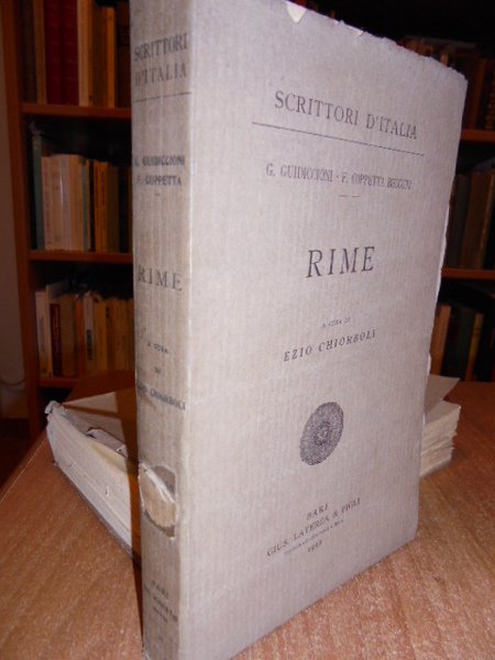 G. Guidiccioni F. Coppetta Beccuti. Bari, Gius. Laterza & Figli, 1912. Scrittori d' Italia. RIME. A cura di Ezio Chiorboli. In - 8°, br. orig. 363,(1) pp. Esemplare ben conservato a fogli chiusi. Neg. mob. 16