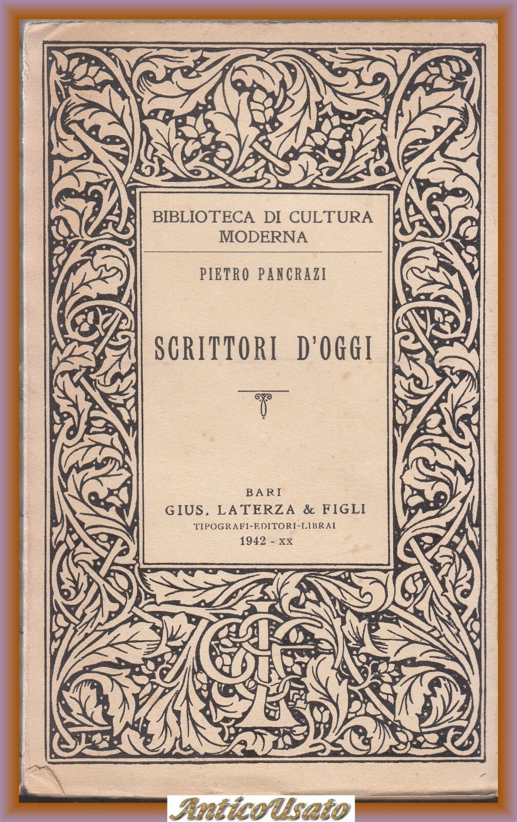 SCRITTORI D'OGGI di Pietro Pancrazi 1942 Laterza Libro letteratura italiana