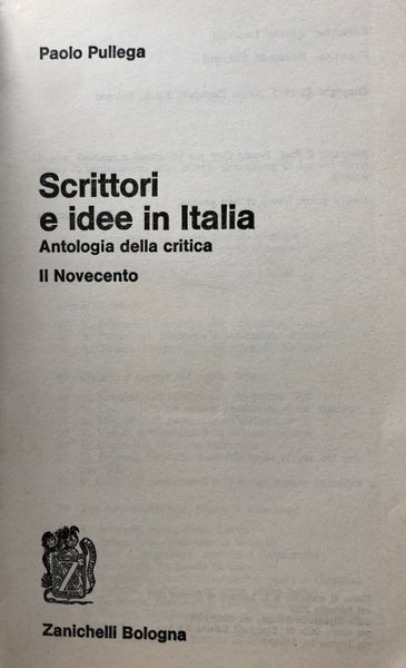 SCRITTORI E IDEE IN ITALIA. ANTOLOGIA DELLA CRITICA. IL NOVECENTO.