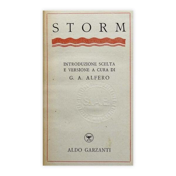 Titolo:Scrittori stranieri - T.Storm Sottotitolo: Introduzione scelta e versione a cura di G. A. Alfero - Prima edizione Edizione: Garzanti editore 1948 Dimensioni: 10,5 x 16,5 cm c.a. Pagine: 261 Copertina: Cartonato Condizioni: Ottime come da foto