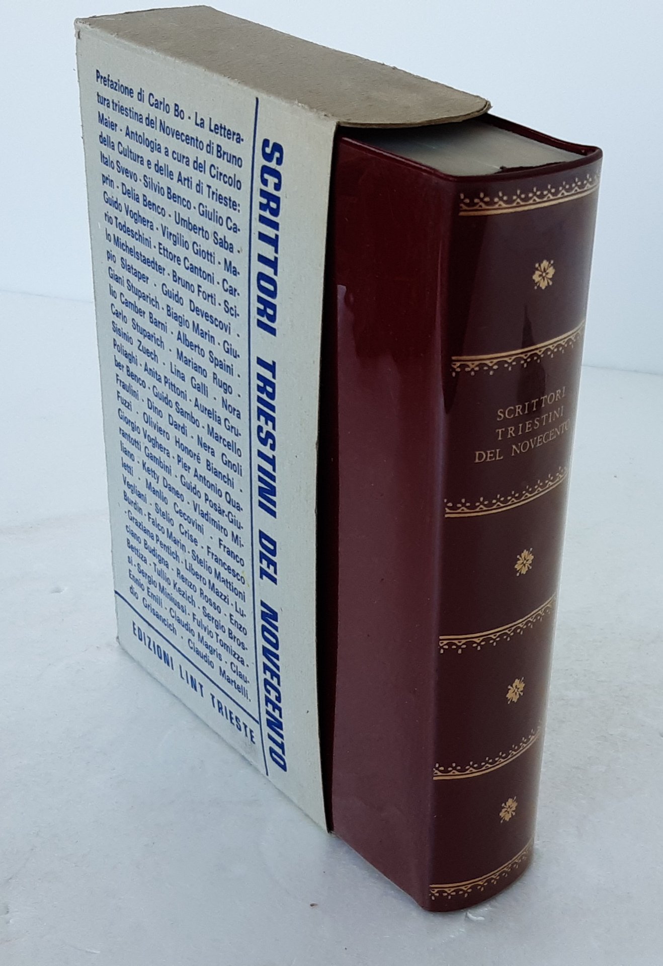 (mm.210x145), pagg.XV-1699. Legatura editoriale in pelle granata con fregi oro al dorso, conservato in cofanetto cartonato editoriale a stampa. Ottimo esemplare allo stato di nuovo, Antologia a cura di Bianchi, Cecovini, Fraulini, Maier, Marin, Todeschini. Con la prefazione di Carlo Bo ed un Saggio di Bruno Maier su la Letteratura Triestina del Novecento. Trattasi della Prima edizione dell’ottobre 1968.