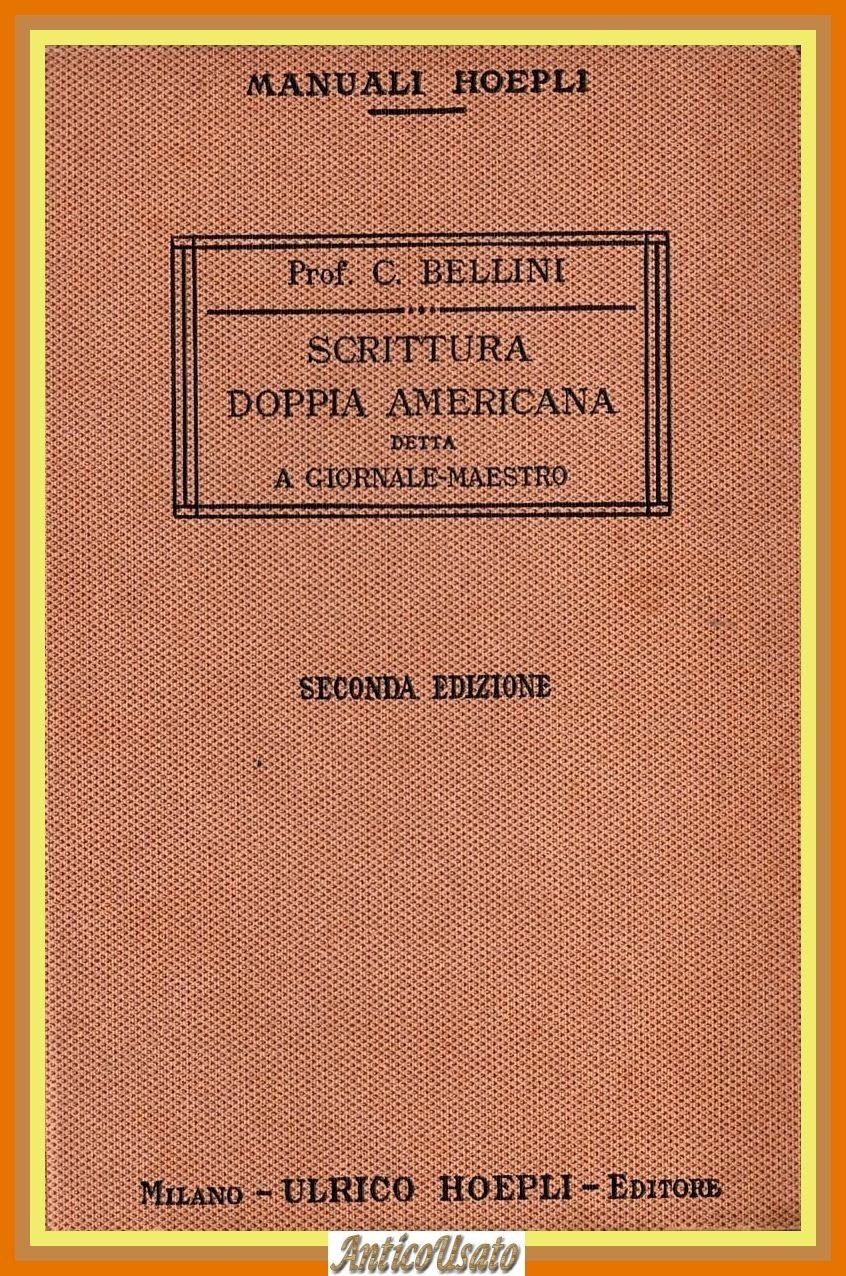 SCRITTURA DOPPIA AMERICANA DETTA A GIORNALE MAESTRO di Clitofonte Bellini. Hoepli Editore, II edizione manuali, 1914 . XI, 154 + 64 pagine di catalogo delle opere. Copertina editoriale in tutta tela. Stato di conservazione: molto buono (pagine normalmente ingiallite) Libro usato saggistica