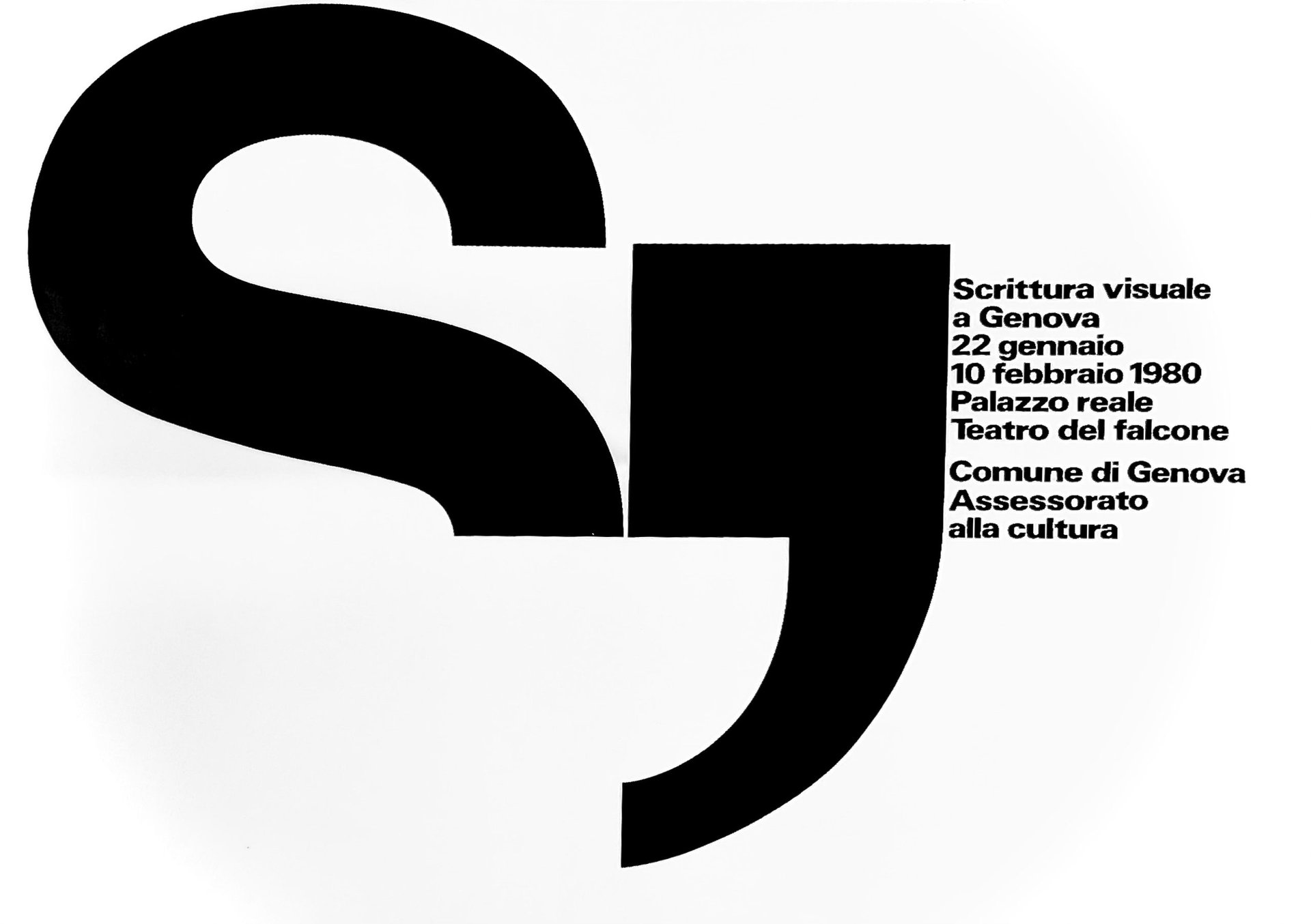 Manifesto per la mostra "Scrittura visuale a Genova", prima mostra di artisti liguri di Poesia Visiva organizzata dall'Assessorato alla Cultura di Genova, ideazione grafica di AG Fronzoni.