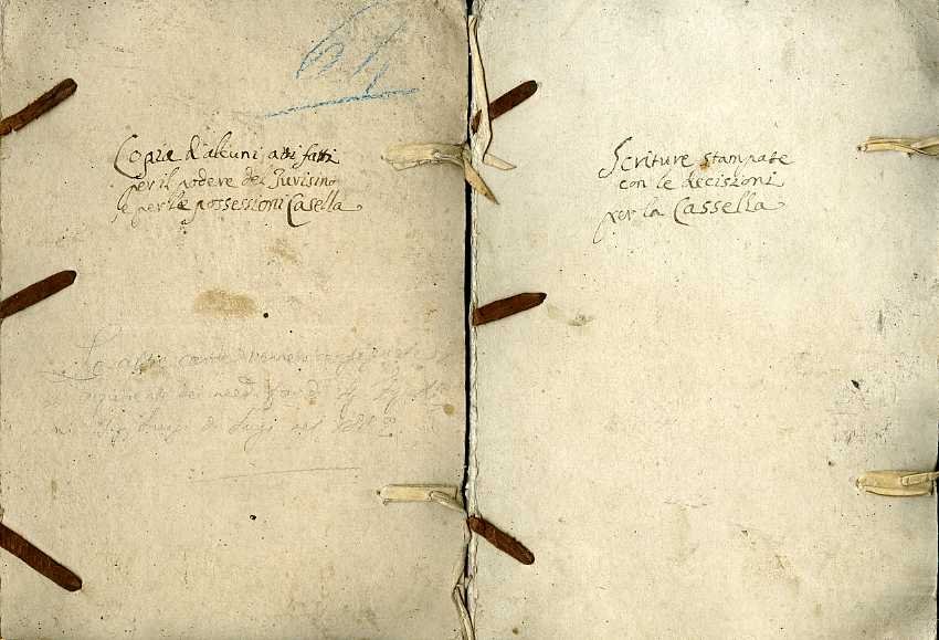 Scritture stampate con le decisioni per la Casella - Copia d'alcuni atti fatti per il podere del Juvisino e per le possessioni Casella - Censi e cambi vivi.