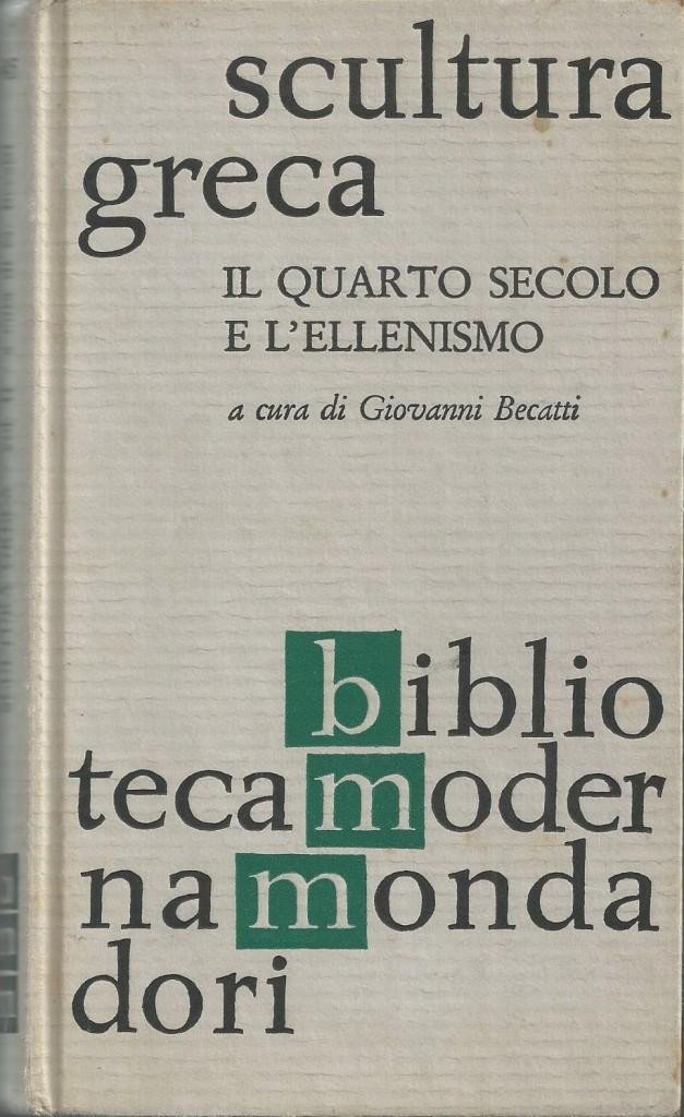 Scultura greca. Il quarto secolo e l’ellenismo, a cura di Giovanni Becatti, Arnoldo Mondadori Editore, s.l. (ma stampato presso le Officine Grafiche Veronesi dell’Editore Arnoldo Mondadori) 1961, prima ed., pp. 205, ill. b.n., cm 19, cart. ed. con titoli al dorso e al piatto. Collana Biblioteca Moderna Mondadori, n. 645. Sezione Arti Figurative. Titolo al dorso: Scultura greca, vol. II. Minime tracce d’uso alla legatura, lievissima ingiallitura della carta, per il resto perfetto.