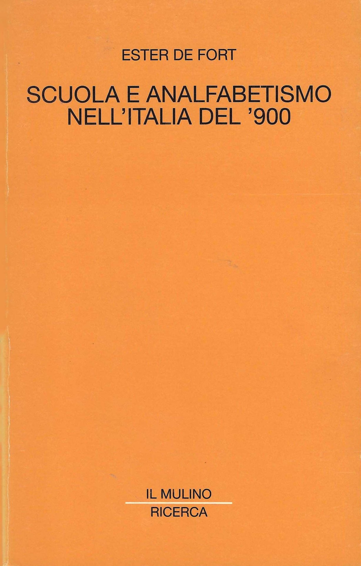 De Fort Ester, Scuola e analfabetismo nell'Italia del '900. Il Mulino Ricerca, 1995.In-8 (Cm 21,3x13,4), pp. 379, brossura editoriale con alette. Il Mulino Ricerca. Ordinari segni d'uso, Ottimo.
