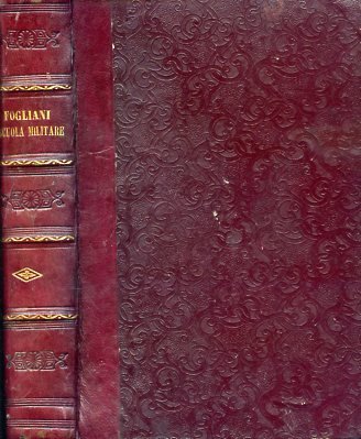 In-8°, pp. (6), 625, legatura coeva m. pelle rossa con dorso a nervetti decorati in oro e con filetti e fregi in oro e a secco. Piatti in tela rossa decorata a freddo con motivi ornamentali intrecciati. Tagli a spruzzo. Errata in principio. Una firma del tempo. Ingialliture marginali. Buon esemplare. Compendio di storia concepito ad uso degli allievi della Scuola Militare di Modena.