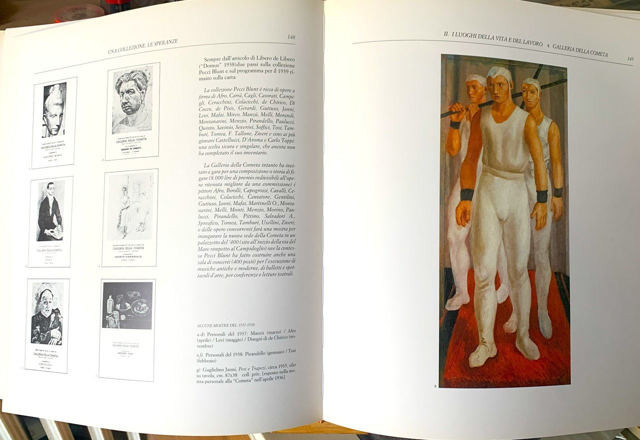 I ed. In-4, pp. XVI+276, cart., sovraccoperta con il primo piatto illustrato a colori (Alberto Ziveri, "Composizione", 1933, olio su tavola, cm 150x1005, coll. Priv., part., cofanetto editoriale muto in cartoncino bianco. Cura editoriale: Anna Gramiccia. Responsabile tecnico: Giovanni Portieri. Stato buono (lieve stato d'uso del cofanetto). Sommario: Introduzione; Antonello Trombadori - Premessa; Maurizio Fagiolo dell'Arco - I tempi e le idee ("Realismo magico" ("Valori plastici" e il nuovo clima - La luce metafisica di Virgilio Guidi - Il "mito" psicologico di Ferruccio Ferrazzi - Il ritorno al museo: Socrate e Oppo - La verità tonale di Carlo Socrate - Antonio Donghi: "naturalezza e artificio" - Francesco Trombadori: la natura del museo - Riccardo Francalancia: "poesia di forme in una umana luce" - Primitivi e eccentricci - I Broglio e il "segreto degli antichi") - "Scuola di via Cavour" (Una russa e un romano (con un marchigiano e un veneto) - Storia della "bionda sirena" - Antonietta Raphaël "eccentrica e anarcoide" - Lo studio di vvia Cavour - Mafai e Scipione: "le misture esplosive" - Mafai a Parigi, Scipione al sanatorio - Compagni di strada) - Il Tonalismo (Roberto Melli: da "Valori Plastici al Tono - Scipione e Mafai: verso la luce - Fausto Pirandello: il tono nella materia - Guglielmo Janni: la psicologia del Tono - Alberto Ziveri: una metafisica del Tono - Corrado Cagli: "Un'alba di primordio" - Giuseppe Capogrossi: archeologia del Tono - Emanuele Cavalli: "architettura armonica" - Convergenze romane) - La scultura ("Valori plastici" e anni Venti - "L'idolo mediterraneo" di Pericle Fazzini - "Momenti di solitudine" di Fazzini - I frammenti biblici di Antonietta Raphaël - Pericle Fazzini "scultore del vento" - Plastica mitica (Raphaël, Mirko, Leoncillo)) - Tra Espressionismo e Realismo (Visioni apocalittiche di Ferrazzi - "Quieta follia" di Fausto Pirandello - "fantasie" di guerra - Arte ccome "collera" di Renato Guttuso - Alberto Ziveri: "la forza eversiva della verità)) - I luoghi della vita e del lavoro (Gli studi, i caffè, gli incontri (Gli studi di Villa Strohl-Fern - La "terza Saletta" del Caffè Aragno) - Le grandi mostre (Biennale romana: una risposta a Venezia - Le mostre del sindacato degli artisti - la I Quadriennale - La II Quadriennale: una mostra esemplare - I premi della II e le altre Quadriemmali) - Le gallerie e i collezionisti ("Case d'Arte Bragaglia" - La "Galleria di Roma" di P. M. Bardi - "Galleria Sabatello") - "Galleria della Cometa" (L'idea, il sito, il programma - L'espansione - Una collezione, le speranze - Artisti della Cometa)) - Carte stampate ("L'Italia Letteraria" - "Fronte" - Libri illustrati - Almanacchi - Gli acidi di Luigi Bartolini) - Pittura e decorazione (Ferruccio Ferrazzi: "il fuoco del dipingere sul muro" - Corrado Cagli: "Muri ai pittori" - Mafai e Ziveri: trionfi e allegorie - Didattiica e pratica di Ferrazzi - Tecniche antiche di Enrico Galassi) - Temi e ossessioni (L'artista allo specchio - Lo studio - Roma: la vedua, la visiopne - Poeti del Tevere - La carne, la morte e il diavolo) - Epilogo. Appendice (Bibliografia (Testi generali - Fonti e Archivi - Gli Artisti) - Indice dei nomi e dei luoghi - Ringraziamenti / Referenze fotografiche). Artisti: Afro Basaldella - Amerigo Bartoli - Luigi Bartolini - Nino Bertoletti - Edita Broglio - Corrado Cagli - Giuseppe Capogrossi - Caterina Castellucci - Emanuele Cavalli - Gisberto Ceracchini - Francesco Di Cocco - Antonio Donghi - Pericle Fazzini - Ferruccio Ferrazzi - Riccardo Francalancia - Francesco Gentilini - Virgilio Guidi - Renato Guttuso - Virgilio Guzzi - Guglielmo Janni - Leoncillo Leonardi - Mario Mafai - Onofrio Martinelli - Renato Marino Mazzacuratii - Roberto Melli - Luigi Montanarini - Cipriano Efisio Oppo - Fausto Pirandello - Domenico Purificato - Antonietta Raphaël - Scipione (Gino Bonichi) - Carlo Socrate - Armando Spadini - Orfeo Tamburi - Francesco Trombadori- Alberto Ziveri.