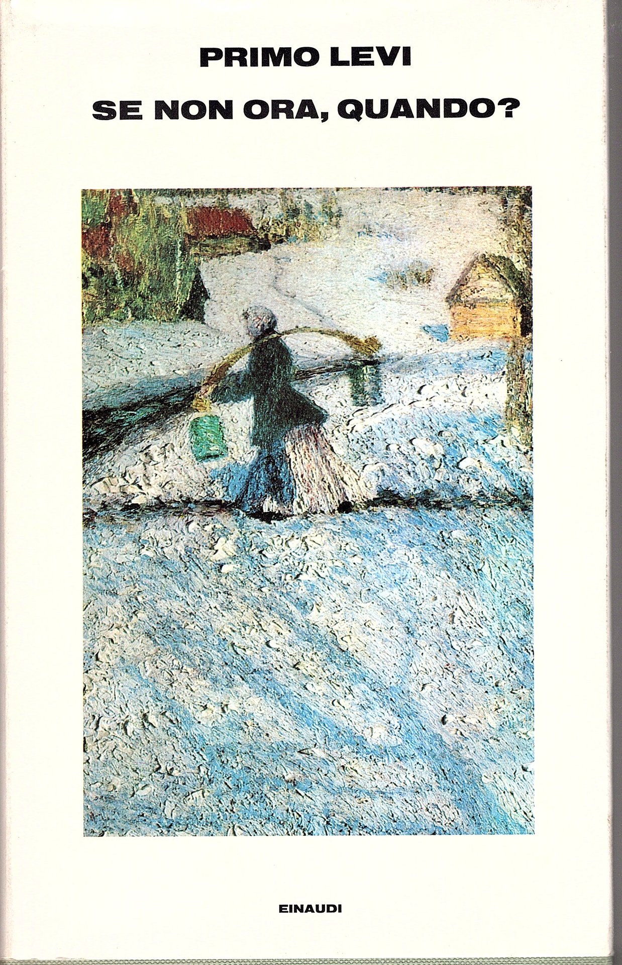 In-8°, pp. 262, (6), tela editoriale, sovracoperta illustrata a colori con un quadro di Igor Grabar, alette paratestuali. Una carta geografica ripiegata della Russia e dell'Europa Centro-Orientale, con l'itinerario descritto nel libro impresso in rosso. Minimi difetti (arrossature alla carta bianca anteriore) e alla sovracoperta ma più che buon esemplare. Prima edizione. 'Con questo romanzo-epopea, Primo Levi ci dà un quadro nuovo dell'ebraismo in Europa orientale, presentato non più nella realtà delle piccole città-ghetto galiziane o russe, ma in quella epica, in parte ancora ignota, delle brigate partigiane durante la seconda guerra mondiale e delle loro lotte, spesso d'avanguardia, spesso su due fronti, per la conquista di una patria, di una dignità e identità sino allora negate. Nelle avventure di una di queste bande si combinano fra loro i lineamenti di quanti, russi, polacchi e al tempo stesso ebrei, ebbero nella guerra partigiana la drammatica occasione di ricostruire se stessi, di riscattarsi, di affermarsi. «Nella neve e nel fango avevano trovato una libertà nuova, sconosciuta ai loro padri e ai loro nonni, un contatto con uomini amici e nemici, con la natura e con l'azione»; se non ora, quando avrebbero potuto agire da protagonisti? Nelle paludi impenetrabili e nei deserti di neve della pianura russa si spostano personaggi competitivi ma stretti fra loro da vincoli fraterni, da affetti e da passioni, civili e selvaggi, mossi da bibliche certezze e insieme autoironici, disperati di Dio. Il loro itinerario parte dalle foreste della Russia Bianca e, attraverso incontri, separazioni, battaglie, si snoda in un intrico di avventure attraverso la Polonia e la Germania, fino alle vie della vecchia Milano, in una terra finalmente ospitale. Venato di comicità sottile, mai incline a compiaciute descrizioni pur nell'affrontare talvolta situazioni cruente, Se non ora quando? è il primo romanzo a pieno titolo di Levi.' (dal risvolto di sovraccoperta). Il romanzo vinse nel 1982 sia il Premio Viareggio che il Premio Campiello. Cfr. Spaducci, p. 158. Gambetti / Vezzosi, pp. 447-448.