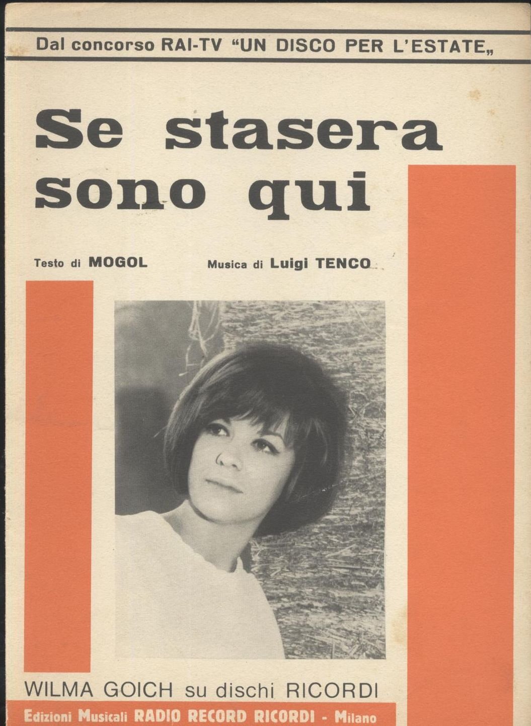SE STASERA SONO QUI di Wilma Goich Spartito musicale originale del 1967.