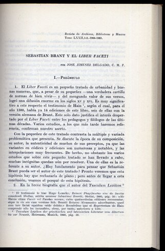 Madrid, 1964-1965 [Extaído de "Revista de Archivos, Bibliotecas y Museos"]. 4to.; 52 pp. Cubiertas mudas en cartulina.