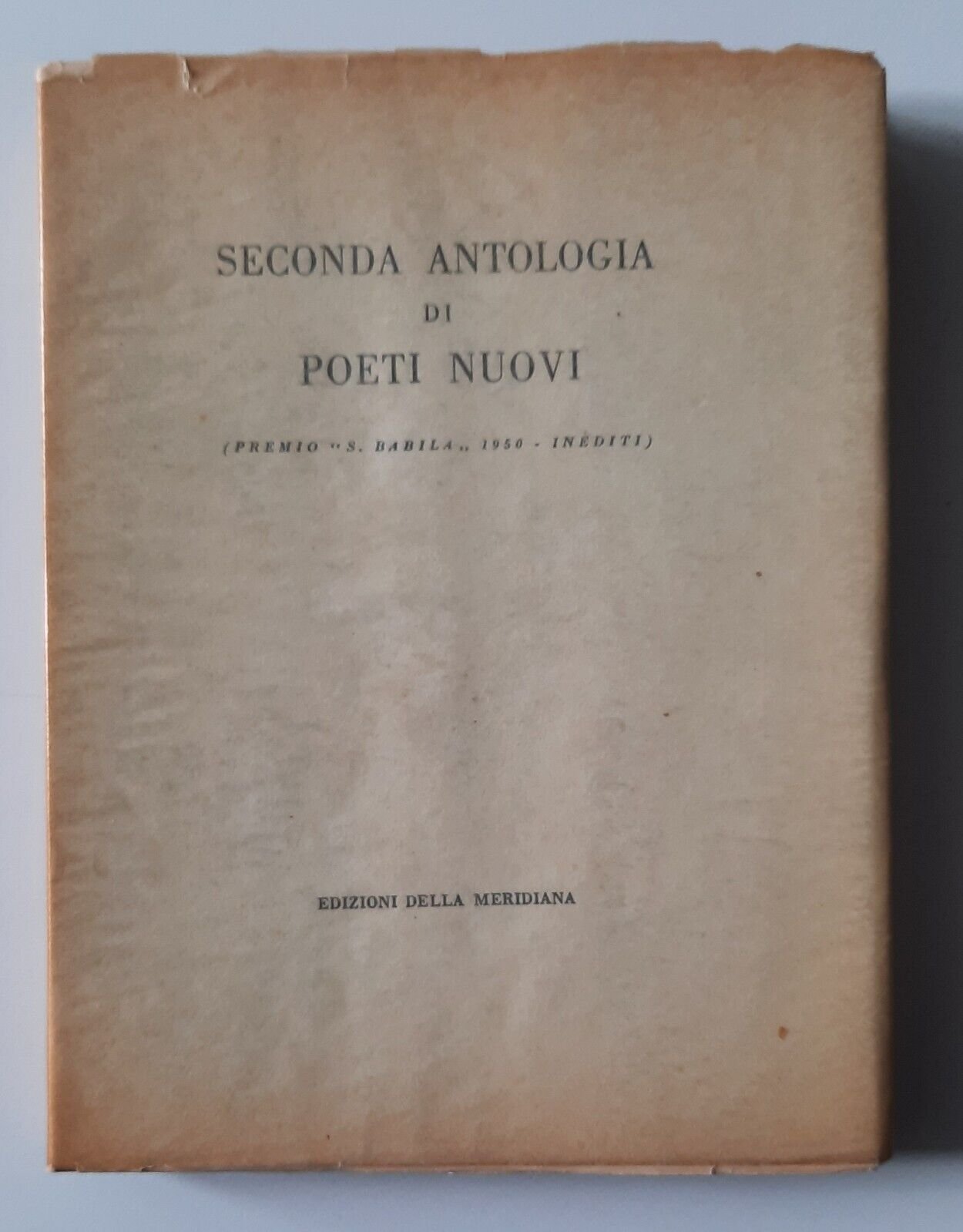SECONDA ANTOLOGIA DI POETI NUOVA ED. DELLA MERIDIANA 1951In 12°, pag. 184, legatura editoriale, copertina illustrata, sovracopertina in pergamino.Lievissimi segni alla sovracopertina.